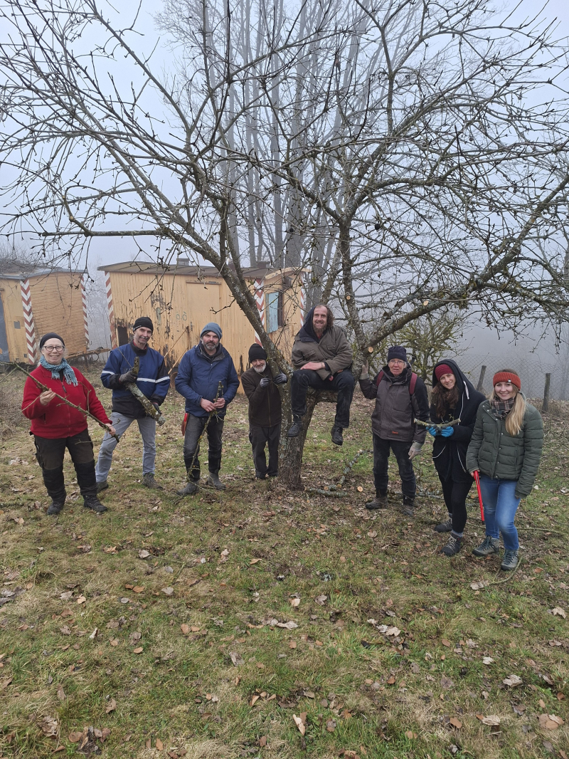 Die Wuchsgesetzte zu verstehen und Schnittarten zu kennen sind das ,,A" und ,,O" um eine gute Ernte sowie starke und gesunde Obstbäume zu erhalten. Dieses Now-How ist wiederum für ein funktionierendes Ökosystem und eine große Vielfalt auf der Streuobstwiese essentiell. Die dafür notwendigen Werkzeuge wurden unter die Lupe genommen und Krankheitsprobleme besprochen. Richard Mahringer klärte die Teilnehmern über Baumkrankheiten und deren Übertragung über Schnittwerkzeuge auf. Die Schnitttechnik und die Stellung der Gerüstäste sowie die Berücksichtigung der ,,Saftwaage“ wurden theoretisch und praktisch gut veranschaulicht.